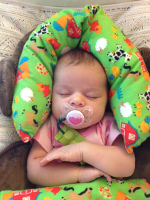 | For plagiocephaly (flattening on one side of head), the Shape Right is used to keep the infant’s head turned to the side of the head that is NOT flat. For torticollis (tightness in the neck on one side), use in conjunction with therapy issued home program for gentle prolonged stretch. For 85% of babies with a preferential head turn, the Shape Right is used to decrease risk of torticollis and prevent a head shape deformity by gently turning the head to the opposite side. ***NOT FOR USE IN CRIB*** | |
